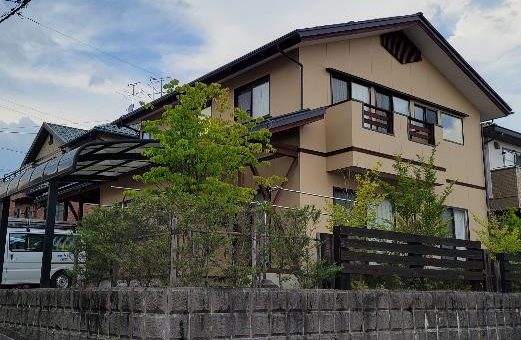 【主な塗装箇所】外壁、屋根、軒天、破風、鼻隠し、鉄骨 (樋掛け替え) 【主な使用塗料】…
