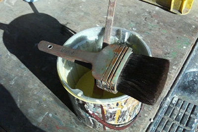 下げ缶 ■刷毛塗りの時、塗料を入れる容器。下げ缶は使っているうちに、塗料がシンナーでは洗…